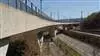 Viaduc de 199 m de longueur. Dalle massive à inertie variable, section transversale en auge avec bordures porteuses. Système statique flottant constitué de 4 béquilles liées monolithiquement au tablier.
