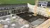 Terrassement de 80'000 m3. Parois de fouilles : 3 parois ancrées/clouées (H = 9 à 14 m) et 1 parois berlinoise (H = 12 m).