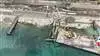 Gradins béton sur pieux béton battus DN 450. Pontons brise-vagues composés de caissons en palplanches PU18 et surmontés d'un platelage en chêne.
