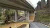 Dalle massive à inertie constante munie de porte-à-faux. Largeur tablier: 11.25 m. Pont flottant à 4 travées centrales de 34 m et 2 travées de rive de 27 m. Banquettes de fondations sur pieux communes pour les deux viaducs et munies de réservations pour ancrages permanents en cas de glissement.